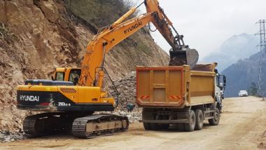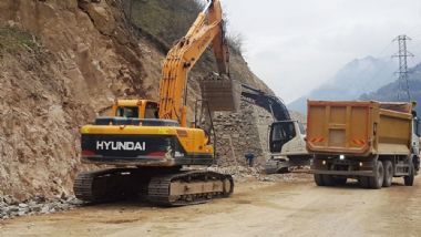 Karaçam-Köknar gurup yolunun yapım çalışmaları, istinat duvarları ve altyapı çalışmaların tamamlanması için çalışmalar aralıksız devam ediyor.