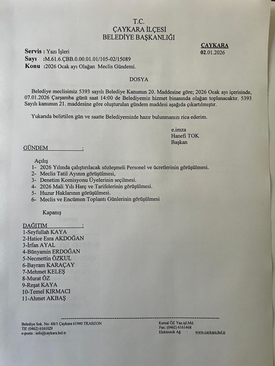 2026 OCAK AYI MECLİS GÜNDEMİ