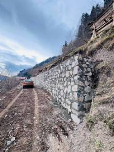 Belediyemizce Devam ve Tamamlanan Çalışmalarımız. • Karaçam Mahallesi Yeşilkaya Mevkii Taş İstinat Duvarı ve Yol İyileştirme &Cced